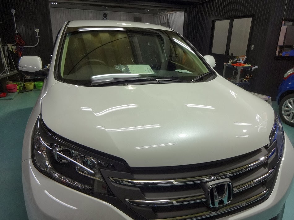新車 ホンダ CR-VのTTクリア5層コートの完成です! より鮮やかな白..新車を超えた輝きに変わりました。もうすぐ お手元に届きますので今しばらくお待ちくださいね!