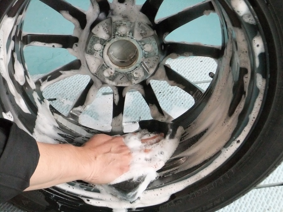 外した夏タイヤのホイールには 勿論ホイルコートが施工されています。だから洗うだけでこの通り…