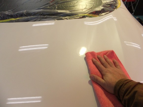 塗装の肌調整,TTクリアーの補充が終わるころには 新車を超えた輝きから更に妖しいまでの輝きに変わっていきました。黒い(濃色車)お車だけではなく,白いということで続きは明日へ…
