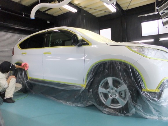 そしてマスキングです。こんなに丁寧にしなくてはいけないのかと思われるかも知れませんが いろいろな所を保護し,磨き作業がやりやすくするために欠かせない作業のひとつがマスキングなのです。