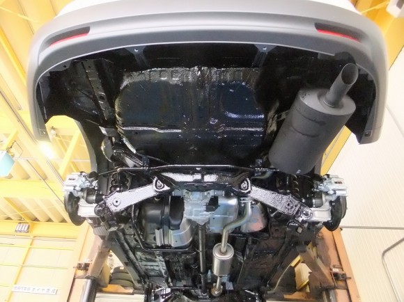 昨日工房に並んでいた2台のCR-Vの白い方の新車にアンダーガードの施工です。いつもは二人で作業を進めていくのですが,他の作業と分担..ということで ほぼ中井くんに施工してもらいました。私は作業の合間にカメラマンのお仕事も…CR-Vは 前にもご紹介したように車の下廻りは,かなりカバーに覆われており,そのカバーを外しての施工となります。上の画像はカバーを装着する手前のものです。いつものことながら綺麗な仕上がりになりました。5年~10年と長期に渡って車を錆から守ってくれる3Sアンダーガード防錆処理,ボディのコーティングもそうですが ただ塗ればいいというものではありません。やはり技術が伴うお仕事となります。