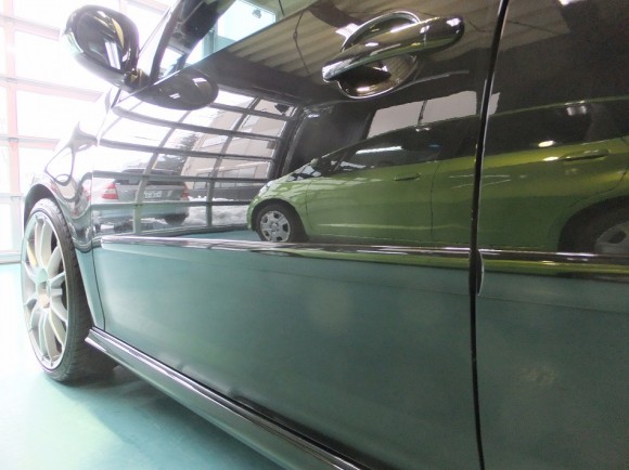 こちらは思いがけない事故に遭われて,リヤドアとリヤフェンダーを修理…当然その箇所は塗装をしますので コーティングがかかっていない状態になります。でも ご安心を! 部分的にコーティングを施工することが出来ます。保証期間中であれば保険請求や,相手に請求することもできますので もしもの時は,まずご相談下さい。
