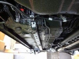 このクラスのお車の下廻りは かなり念入りなカバーに覆われていますので,カバー類を外しての施工となります。