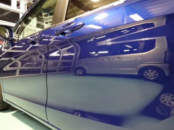 最近は黒色などの濃色車が多く,お車の磨きも中々手間がかかることが多んです…塗装の傷みに応じて磨き方を変えて仕上げていくわけですが,濃色車は特にシミやキズが目立ちますのでその処理に時間がかかるのです。勿論 ただポリッシャーでコンパウンド使って磨けばよいというものではありません。 塗装を磨きすぎると塗装の耐久性は落ちていきます。塗装に出来るだけ負担のかからない方法で磨くことも技術のひとつなのですねー…
