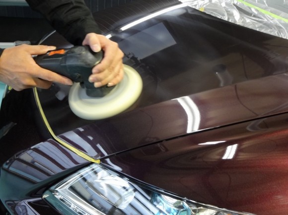 下地処理が終わるとマスキング,塗膜チェックと進みいよいよ 塗装のポリッシュ作業となります。勿論 塗装に最小限の負担と最大限の輝きを生む マスタライズ工法を駆使しての作業となります。